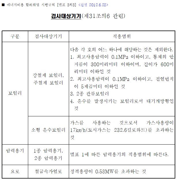 이에 대해서는 「에너지이용합리화법 시행규칙」 제31조의6에 근거한 [별표 3의3]을 검토해야한다.